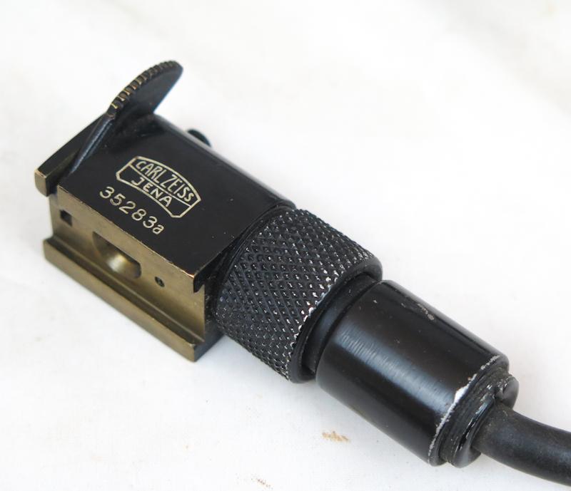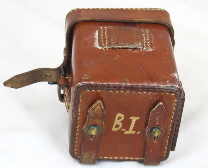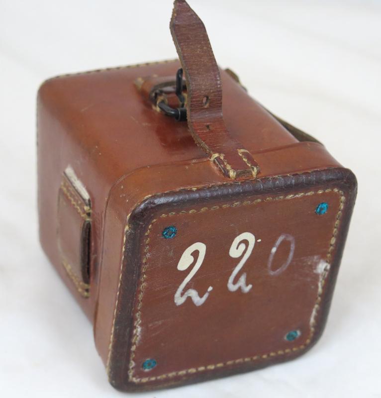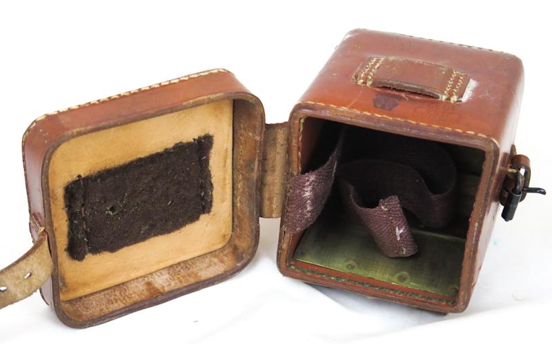 ENG WW2 German optics illuminating device battery box and lighting cord. Used at MG sights and rangefinders. Original german light brown leather case. Marked Carl Zeiss, 1937 Original illumination cord with Carl Zeiss marking. Used box in good condition, all parts present with period markings painted on. Good addition to equipment.