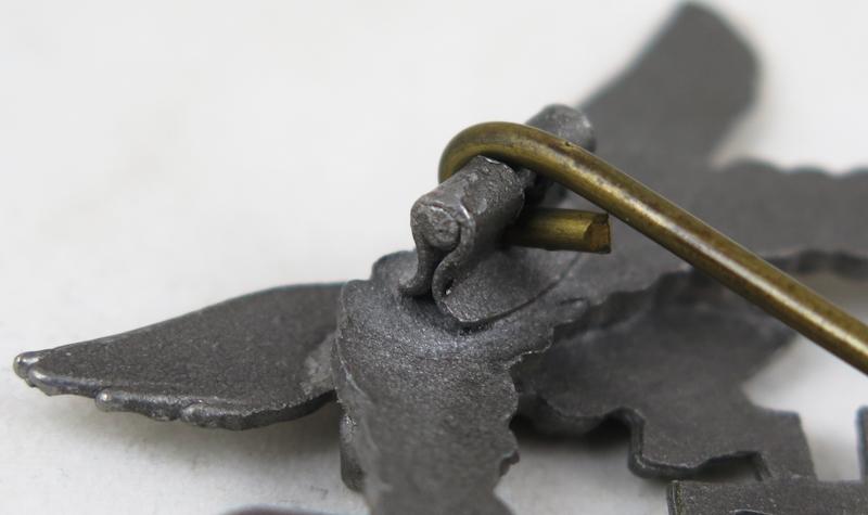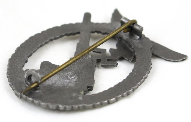 ENG WW2 German army AA-artillery badge, "Flak abzeichen". Typical badge for maker "G.B. = Gustav Brehmer". This badge is made from zink. Silver wash is worn. Good, original badge!