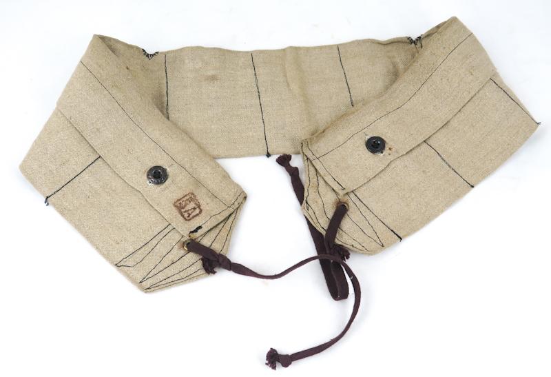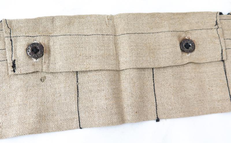 ENG WW2 Finnish army canvas bandolier for rifle ammunition. 9 compartments. Very typical infantry soldier equipment, often seen in wartime photos. Good condition. Light colored cloth. SA marked. Nice addition to combat gear.