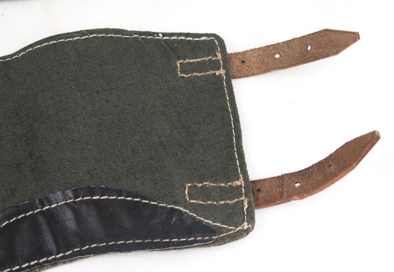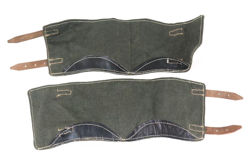 FIN 2MS Saksan Wehrmacht/Waffen-SS säärystimet. Vihreät säärystimet puolikengille. Vähän käytetyt säärystimet. Merkintöjä ei nähtävillä. Nahkaosat hyvässä kunnossa. Aidot, hyvät säärystimet.