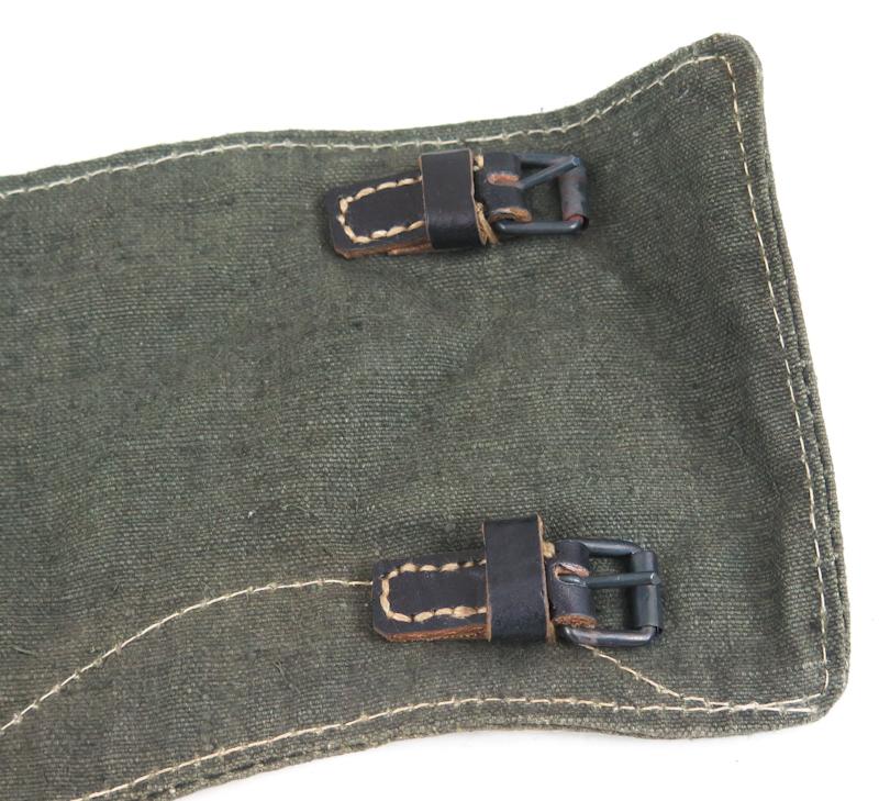 ENG WW2 German Wehrmacht/Waffen-SS gaiters. Unmarked. Green canvas gaiters. Little used, matcing pair. Leather straps in sound condition. Original gaiters, good pair.