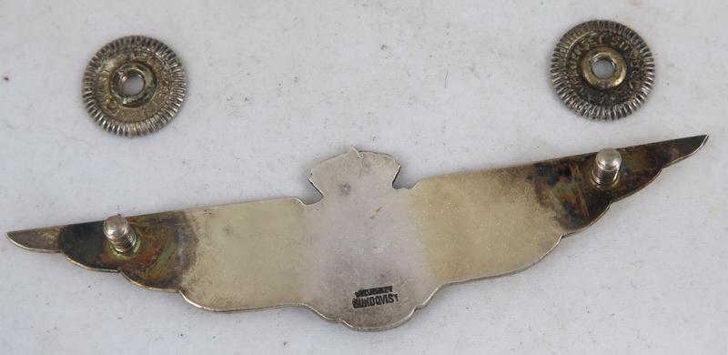 FIN Suomalaiset lentäjän/ohjaajan siivet M/45. Metallisiivet. Ruuvikiinnitteinen, valmistaja Veljekset Sundqvist. 1960/70-luvulta. Hyvä, harvinainen, aito merkki.