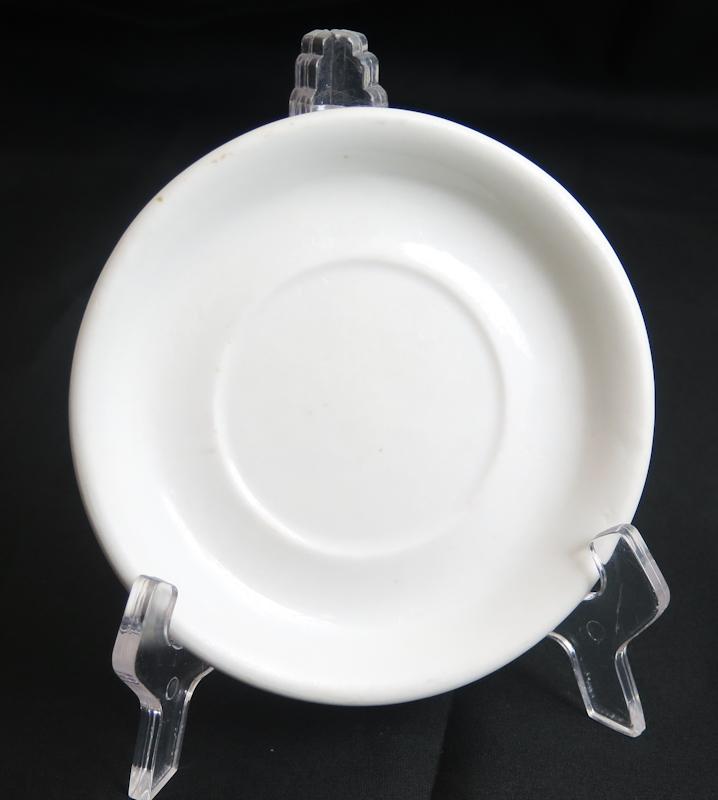 FIN 2MS Saksan Wehrmacht armeijan ruokalan tassi lautanen. 14cm leveä posliini lautanen. Käytön jälkiä, ehjät. Pohjassa armeijan kotka tunnus ja valmistajan leima, Bavaria 1941. Hyvä, aito lautanen