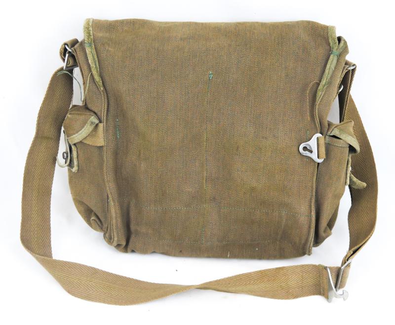 ENG WW2 Finnish gasmask bag M30. Just a bag. Maker marked, Friitala made. Green grey leather straps. The Shoulder sling is complete with metal parts. Waist strap is missing. Inside a bag a metal wire foo filter, often missing. Leather strap sublte and sound. Gasmask M30 was a major gas mask model and destined to infantry combat units Nice bag for finnish soldier set up!