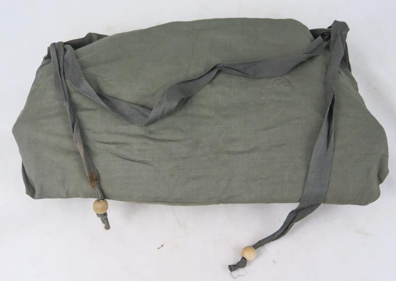 FIN 2MS Saksan Wehrmachtin M39 kevyen kaasusuojelupuvun suojasaappaat ja lyhyet housut kantolaukussa. Esineissä Harmaa ohut kangas, sisäpuolella kumi. Hieman tahroja. Ehjät. Kantolaukussa merkintöjä "gec 60 44 9". Valmistaja Mantel-Meier, Berlin (gec), ja päiväys vuodelta 1944. Pussin napissa ruostetta ja tahroja. Kohtuullinen setti.