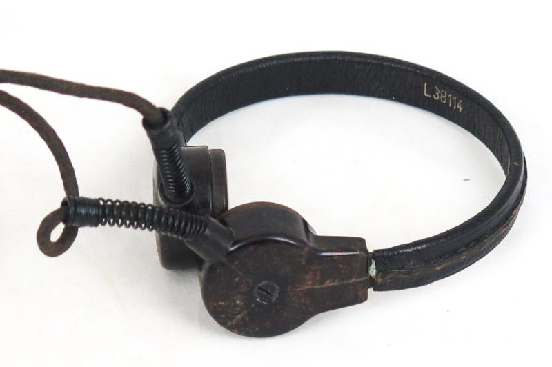 ENG WW2 German FLAK crew headset. Headset used by FLAK crews. Single rubber padded headset L38116 with throat mic L38114 and control box L38133. Good condition. Original cloth covered wiring,unfortunately the pliig has been cut off. Maker "DTW" on headset, dated 1943. Nice and rare set.