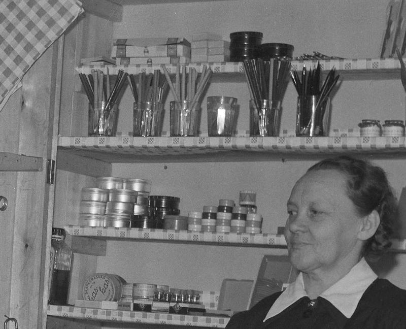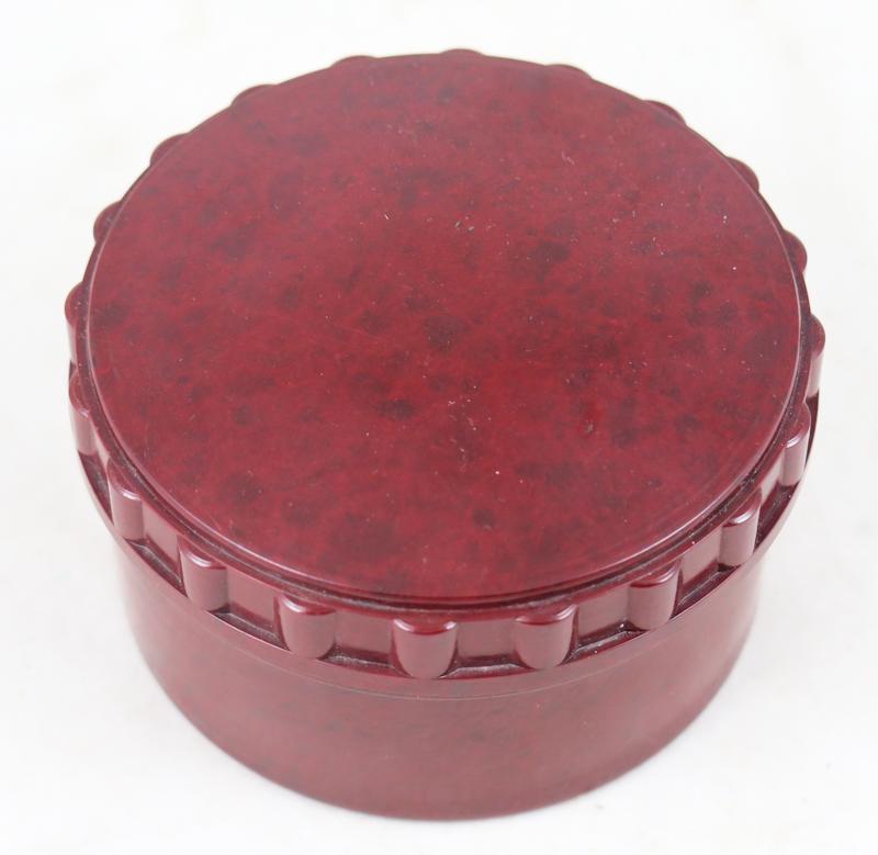 ENG WW2 Finnish butter dose. Red bakelite made box. Voluntary items to soldiers gear. No maker marks. Last image from SA-kuva archive from wartime showing same kind of doses on the shelf of canteen. Nice, original box.