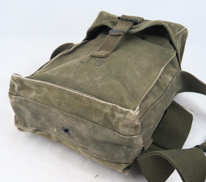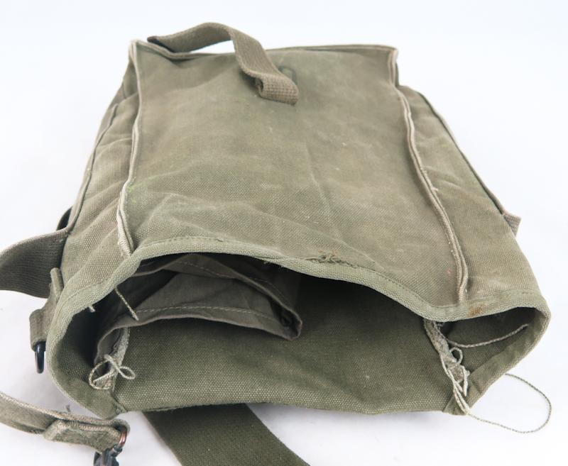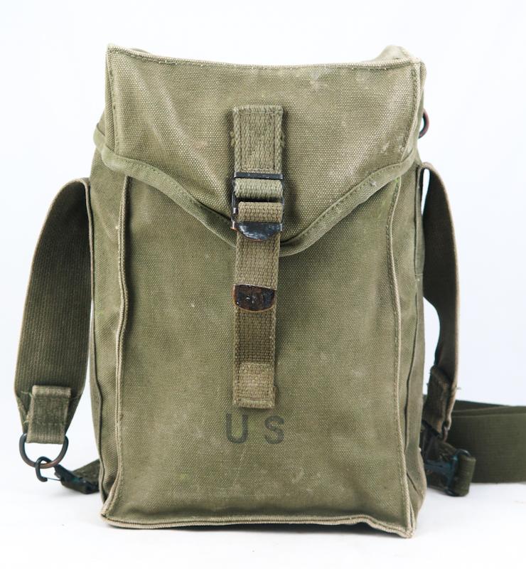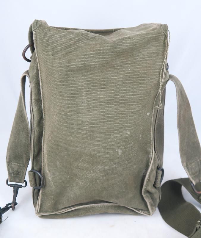 FIN Kylmän sodan US ampumatarvikkeiden kuljetuslaukku M1. Yleislaukku patruunoille, kranaateille, jne. Oliivin vihreä värinen laukku. Vähän käytetty laukku. Valmistajan merkinnät ja päivätty 1951. Alkuperäinen laukku.