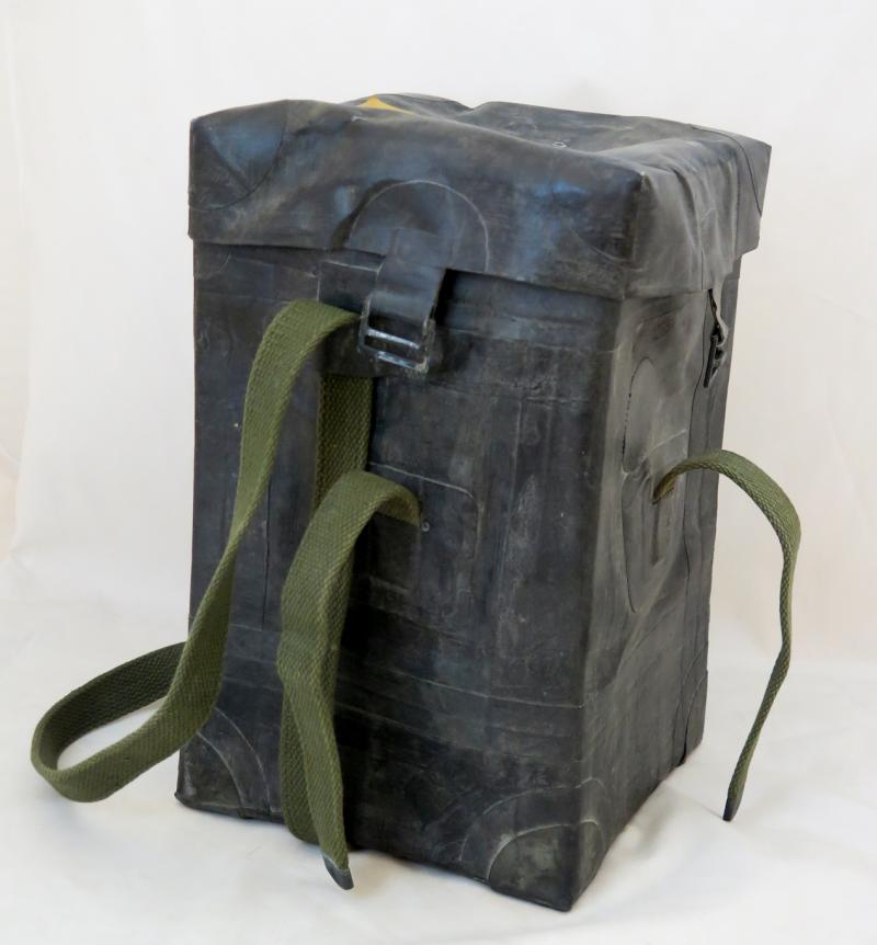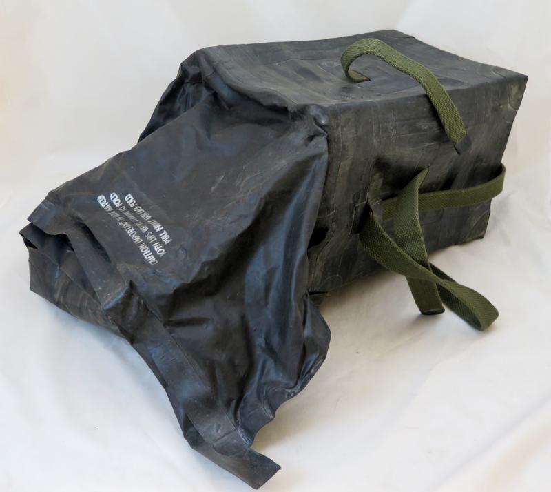 ENG WW2 US army rubber case. Special rubber case for amphibious opearations to carry and cover equipment. Marked on top Bag, waterproof, specila purpose, made by US rubber co, stock and contract number. OD webbing. Nice, good condition,rare bag.