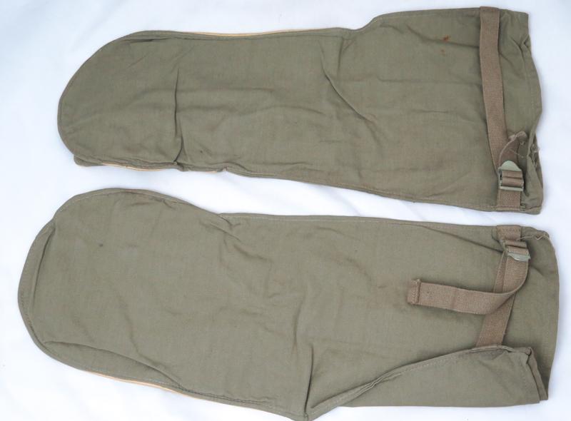 ENG WW2 US army Trigger-finger mittens. Olive cloth and leather mittens. Trigger finger model. Unused. Dated 1944. Good pair.
