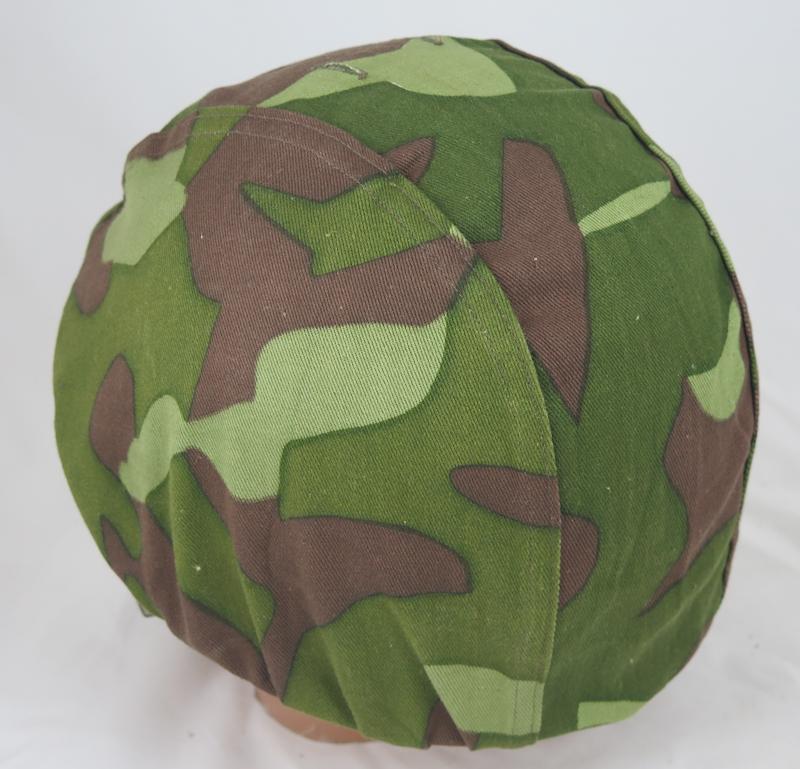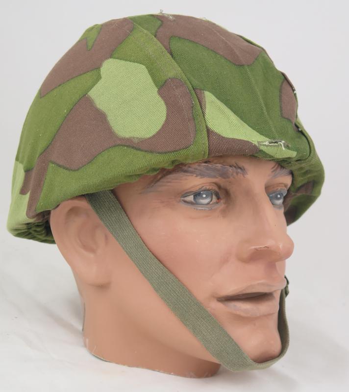 ENG Post-war Finnish defense forces M62 steel helmet. Used helmet. Grey steel helmet with some. Liner used condition, liner size 57-61. Green webbing chinstrap. Camo cover hood M62 camo pattern. Camo hood made in 1964. Helmet is big sized. Good finnish helmet.