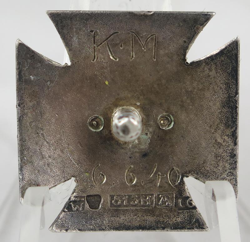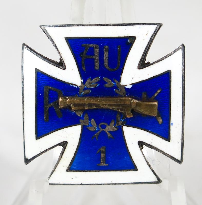 ENG Pre-war Finnish army Reserve NCO course badge. Badge marked RAUK 1 and emblem LMG. Silver hallmarked badge, L6 = 1940. Initials of recipient engraved to back and course time 6.6.40. Nice and rare badge.