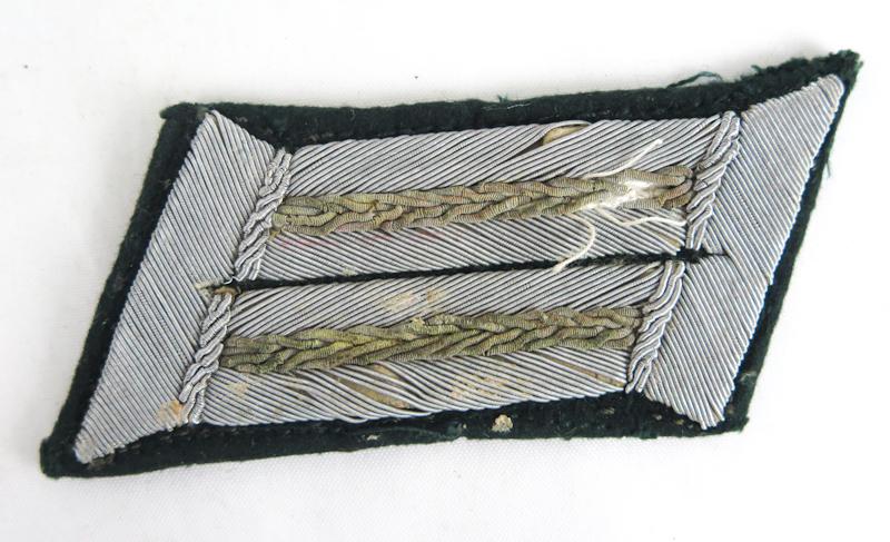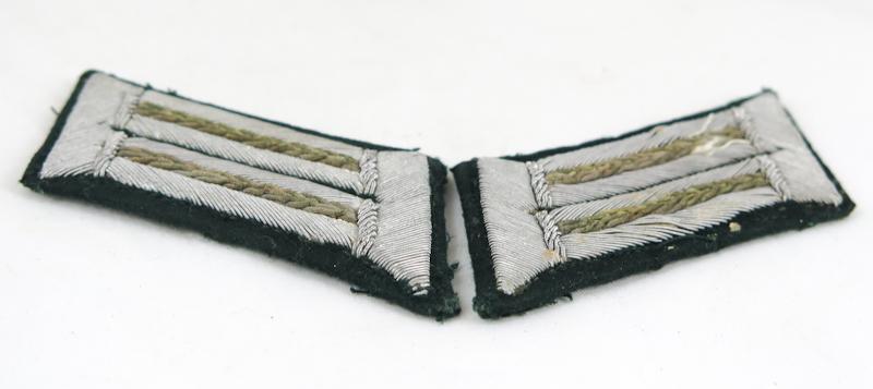 ENG WW2 German army infantry officers collartabs (kragenspiegel). Uniform removed pair. Made from silvercolored thread. White infantry "waffenfarbe" at center. Used pair.