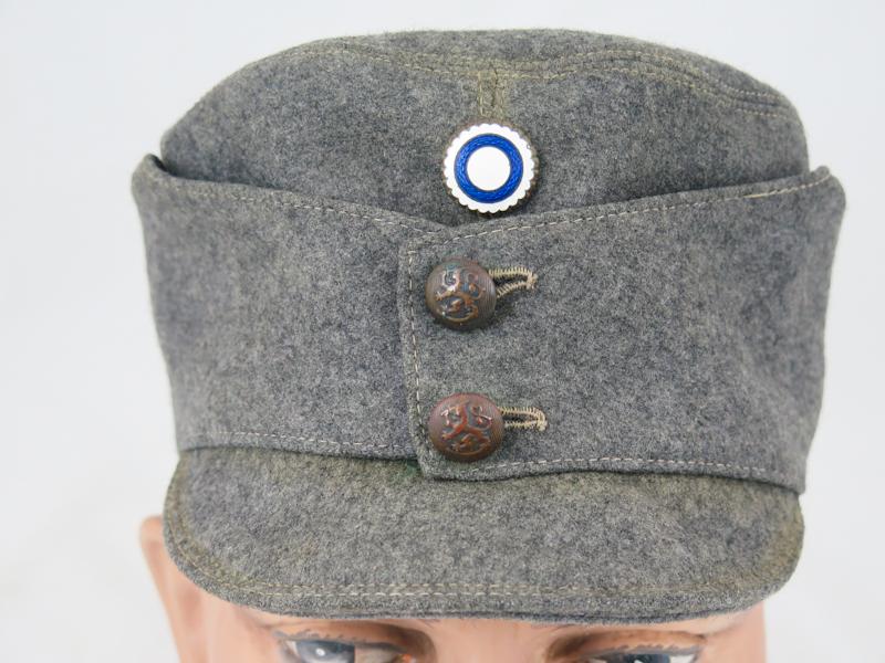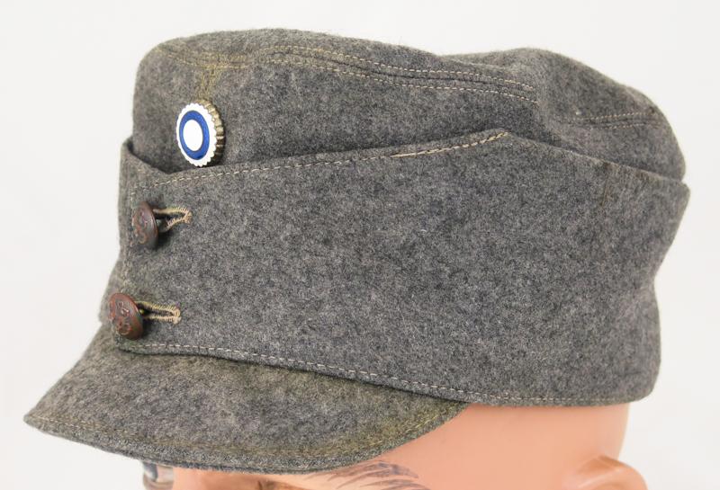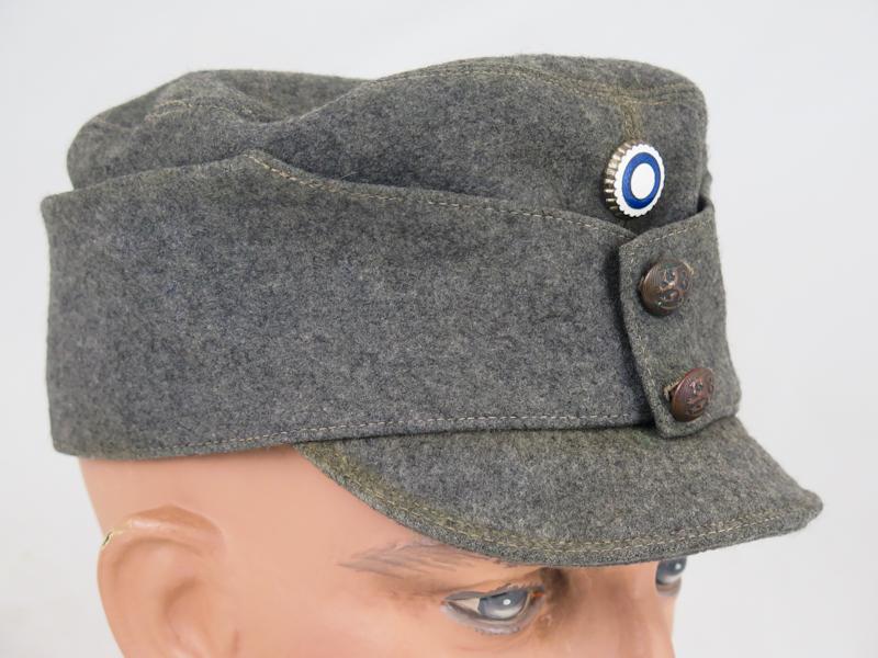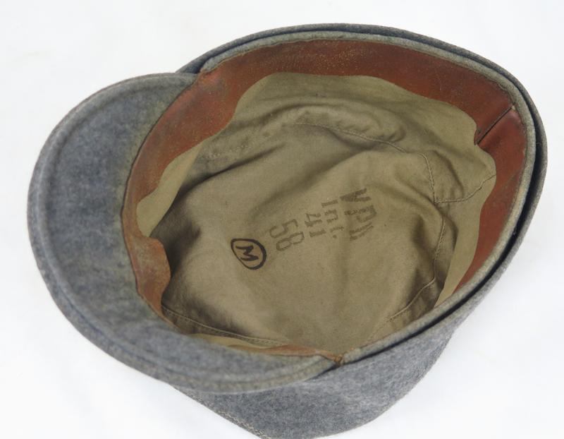 ENG Finnish  WW2 fieldcap M36. Grey army wool cloth  cap. Cap is marked, maker VPu, INT41, size 57, M(sold). Brown leather sweatband. Metal army buttons. Enamel national cocade. Original, very good condition cap. Hard to upgrade!