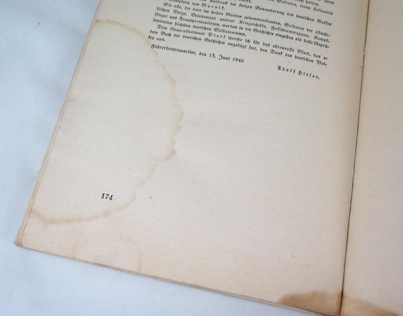 FIN 2MS Saksalainen kirja - Narvik - Sieg des glaubens, 1941 . Narvikin taistelusta. Kirjassa  kuvia rintamalta. Kosteusvaurio takasosassa ja muistokirjoitus etulehdellä. Sivuja 174. Kohtuullinen kirja.