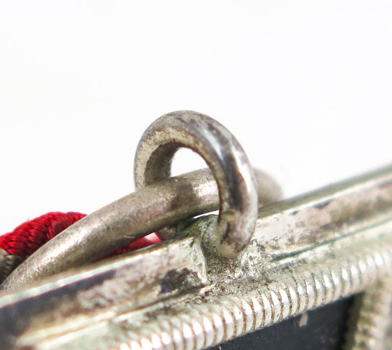 ENG WW2 German Iron cross 2nd class. Made from three parts, iron centre part. Patinated cross. Early made type with so called half lug for ring. Type known made by Steinhauer & Luck. Polished frame type. No maker mark. Original ribbon. Nice, original cross.