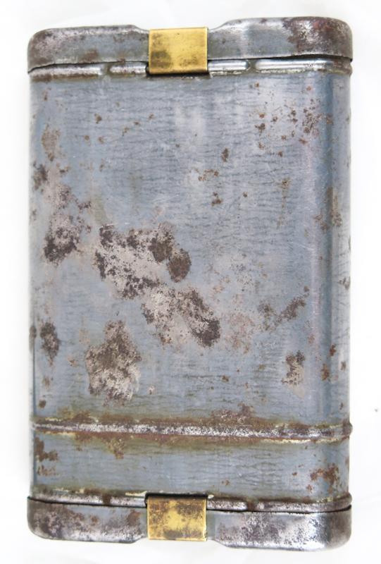 ENG WW2 German Wehrmacht/Waffen-SS rifle cleaning kit 34, Reinigungs gerät 34. Metal case with complete cleaning kit, oiler, two brushes, chain and tool.  Unpainted early model, marked "G.Appel 1937" and WaA mark. Oiler marked Hawig, in sound condition.  Chain G.Appel and WaA marked.  Nice early war case with mismatched parts. Good set to complete soldiers set!