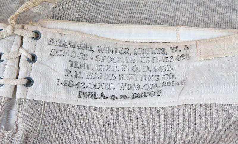 ENG WW2 US War Aid winter drawers. Made for British as an aid. Grey short drawers for winter time. Size 2 , waist 32. Unused original pair.