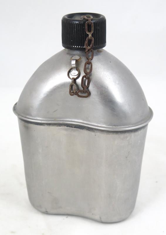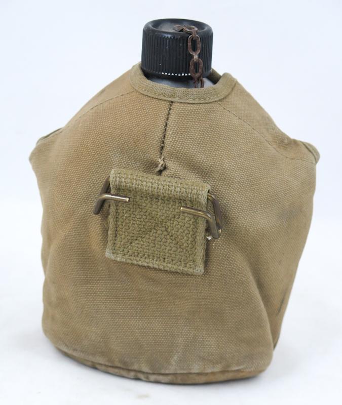 FIN 2MS aikainen USA:n armeijan M1910 kenttäpullo. Khakin värinen kulunut suojus, leimattu " AG Corp,1942". Pullo ja kuppi 2MS päivätty. Kuppi päivätty 1943. Muovikorkillinen pullo, päivätty 1944. Hyvä setti.