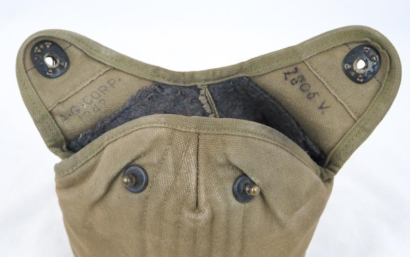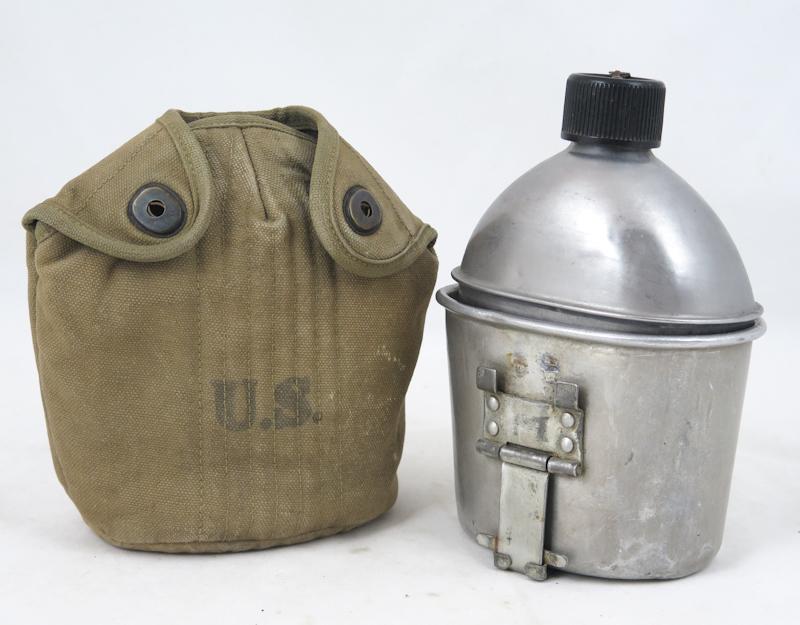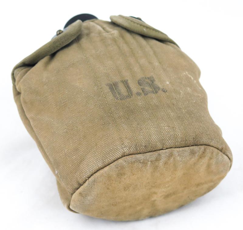 ENG WW2 US army M1910 canteen set. Khaki colored, used cover, marked "AG Corp,1942". Bottle is late-war model, dated 1944. Cup is round lip model, dated 1943. Nice set.