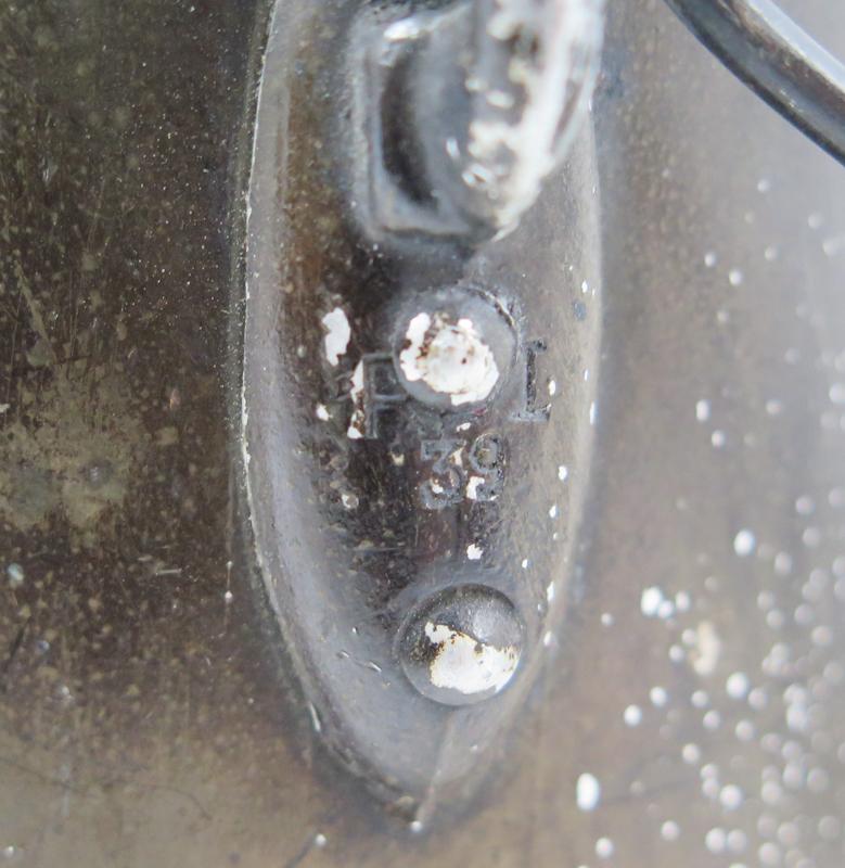 ENG WW2 German Wehrmacht/Waffen-SS M31 mess kit. Comes with original black leather mess kit strap. No visible marks on strap. Grey-green painted mess kit, worn. Marked, RFI38 on lid and RFI 39 on carrying wire attachments. Carrying wire is bent. Fair condition used messkit from early war period.