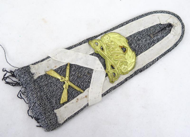 ENG WW2 M36 summerblouse shoulderboards for Reserve officer candidate. Metal emblems of RUK and infantry, one of the RUK emblems is missing. White grudely added braiding around shoulderboard and middle stripe for candidate status. Used, uniform removed set to finnish insignia collection!