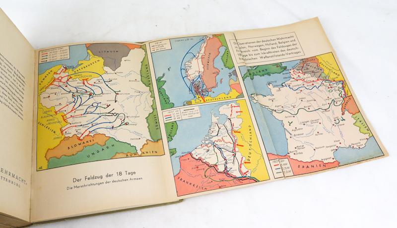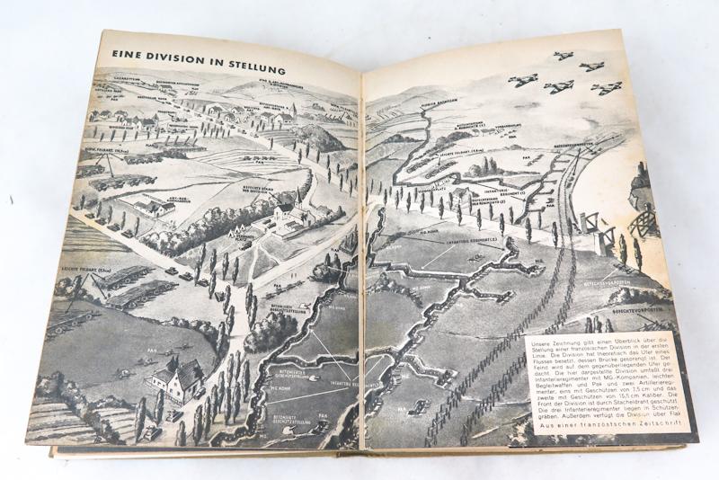 FIN 2MS Saksalainen kirja - Die Wehrmacht 1940. Saksan 1940 taistelusta kertova kirja. Kirjassa kuvia rintamilta. Joitain kosteusvaurioita. Sivuja 319. Kohtuullinen kirja.