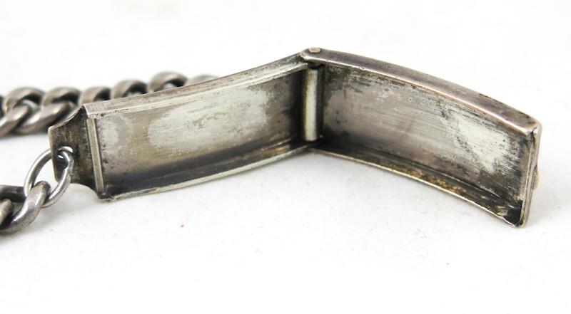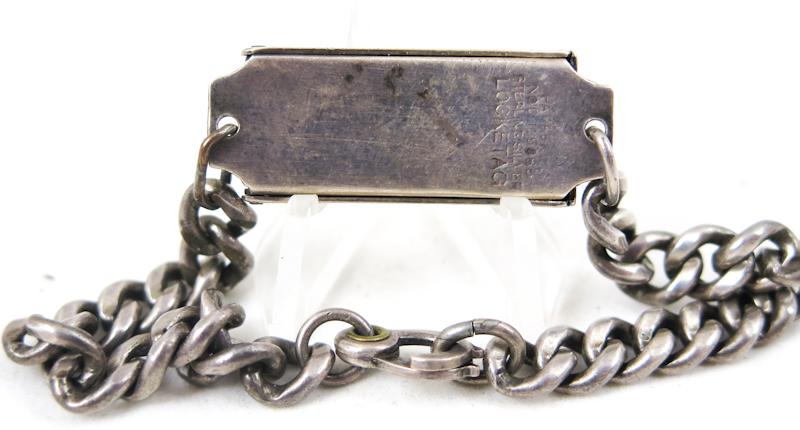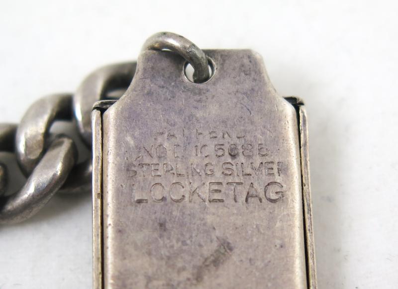 ENG WW2 US army soldiers bracelet. Chained steel bracelet with silver sterling "Locked" plate. Sterling marked. Quite heavy piece. Nice, unusual WW2 item.