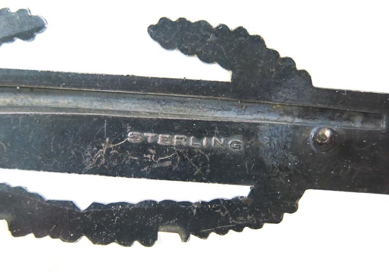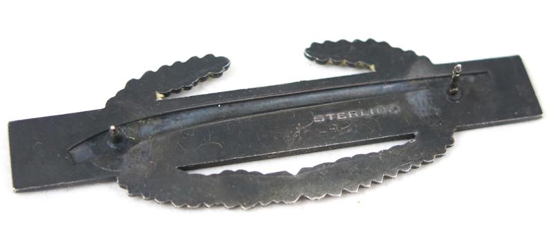 FIN 2MS US armeijan jalkaväki taistelijan merkki CIB(Combat Infantryman Badge). Myöhempää valmistetta, jossa pinssikiinnitys. Sterling hopea leimaus merkissä. Tummunut. Hyvä, aito 2MS merkki.