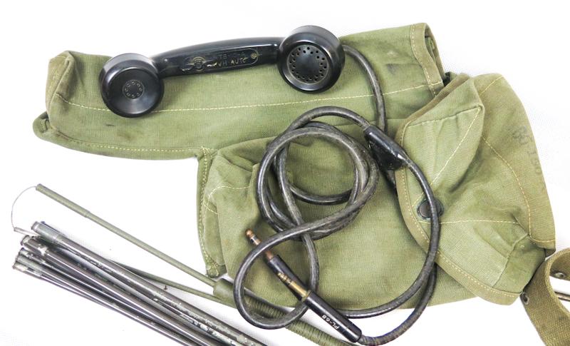ENG WW2 US army BC-1000-A man portable radio. Also known as Walkie-Talkie radio. Radio is made in 1944. Ex-finnish army. Original olive-drap paint. Original waist belt ST-55, back cover M-391, carrying strap ST-50-A and equipment pouch BG-150-A. Hand set TS-15 and Post-WW2 made march antenna and normal antenna, which cord inside is broken. Radio has all us texts and on inside lid finnish list of equipment. Function is not tested and it is sold as display item. Nice, original WW2 radio!