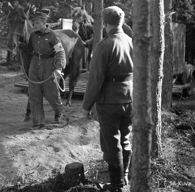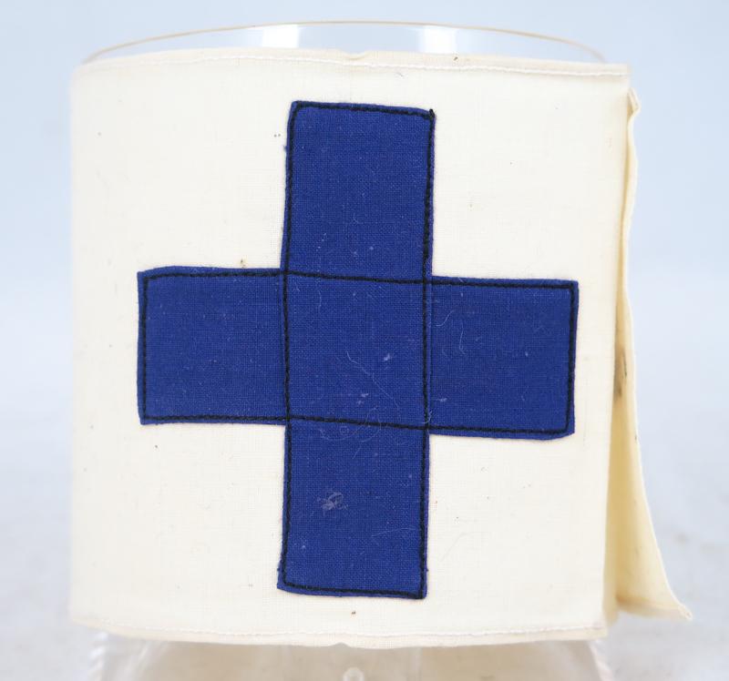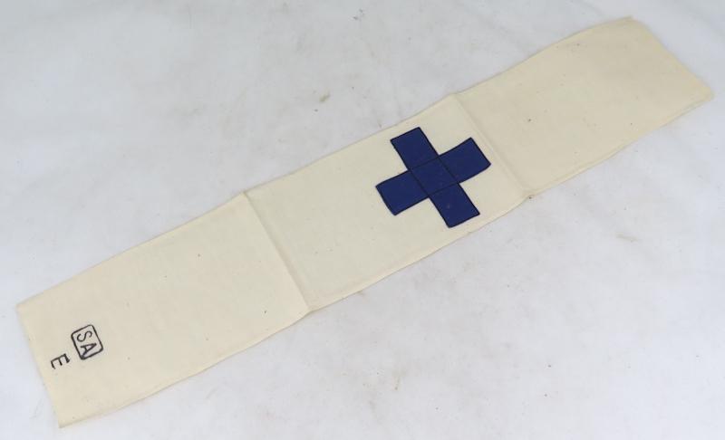 ENG WW2 Finnish armed forces blue-cross armband for vetenerian personnel. Stamped SA-stamp (Finnish army property stamp)and Letter "E" for Eläinlääkintä(vetenerian). Unused. Last image showing WW2 use.Unusual armband!