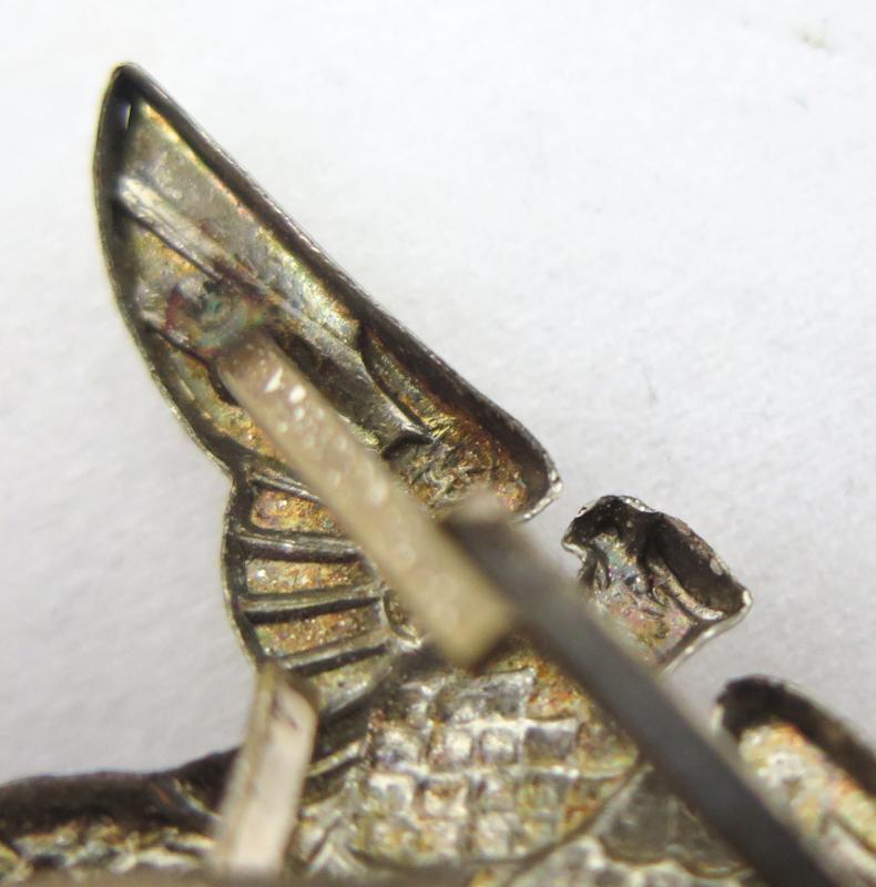 ENG WW2 German early political cap eagle. Light metal made. Marked RZM on back. Slight worn and spikes in good order. Nice, original eagle
