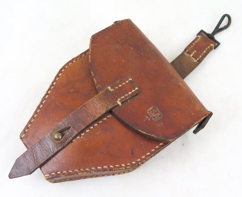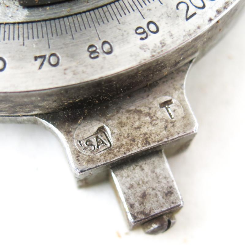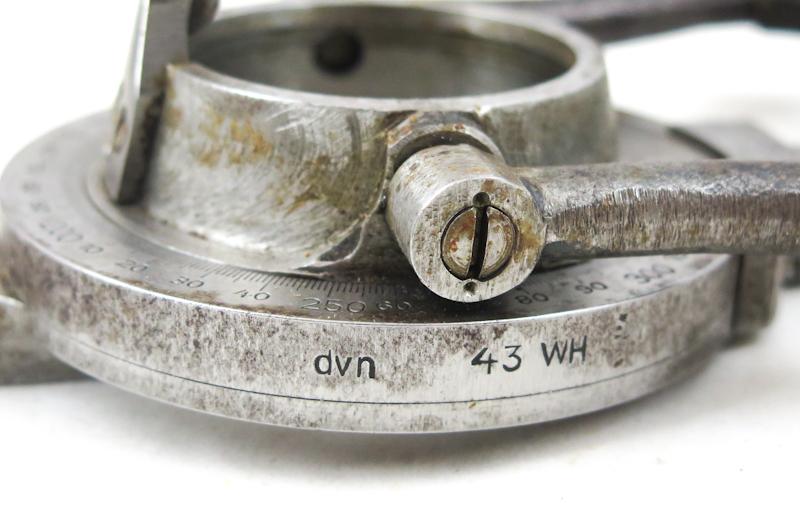 ENG WW2 German Wehrmacht artillery fuze timing tool. For timing the fuzes which are marked on timer side. Used by artillery and FLAK units. Timer maker marked "dvn" (H.F.Schnicke) and dated 1943 WH. Small finnish army "SA T" mark on timer. Comes with brown eather pouch, marked finnish army "SA T" on cover, and maker "gmm"(Eckardt & Lohkamp) and date H 42. Rare and Unusual, good condition german equipment.