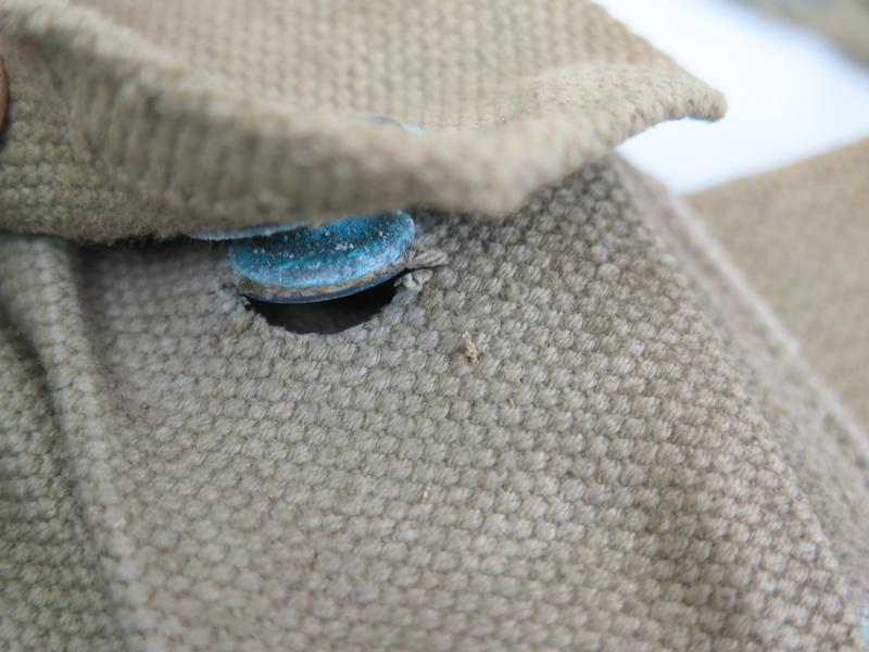 ENG WW2 US army M1923 ammo belt for M1 garand rifle. Ten compartment belt for clips. WW2 made belt. Made in 1943, maker H.S. Co. Worn belt with stains and worn parts. Careful opening from LTD buttons adviced. Fair to good condition belt for US gear.