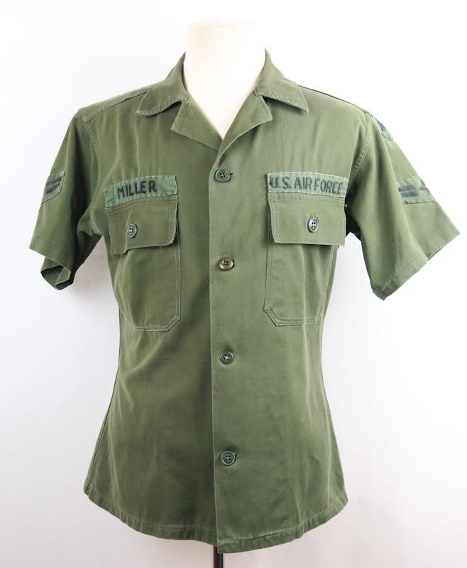 FIN US Ilmavoimien sotapoliisin paita. Oliivin vihreä paita, jota muokattu paljon. Paidass lyhyet hihat ja Vietnamissa valmistetut merkit. Vasemmasa hihassa Etelä.-Vietnamin armeijan sotapoliisin merkki, jota Ilmavoimien poliisit käyttivät. Koko n.small/medium. Hyvä, harvinainen paita.
