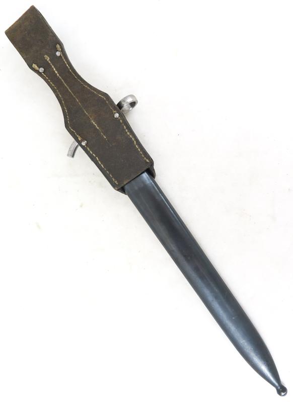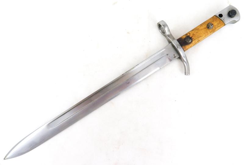 ENG Finnish pre-war made bayonet for Civil guards M/28-30. Blade of the bayonet is good. Sheath in good condition. No sharpening to blade. Hilt has Civil guards acceptance stamp "=S=". Unnumbered without Civl guard district serial. Bayonet is made by Hackman and marked SkY. Leather frog is WW1 german made and in good shape. Brown leather. Maker mark unreadable, date 1918 visible. Good bayonet NOTE: Before ordering please check your countrys possible restrictions for import of bayonet.