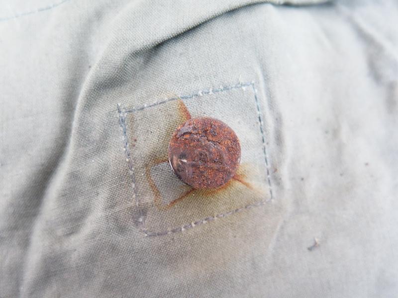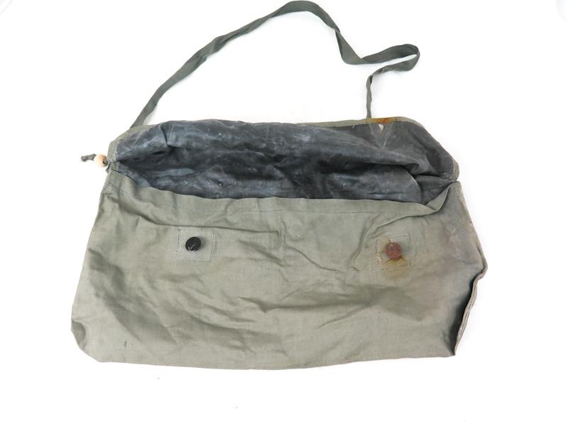 ENG WW2 German M39 light gas suit boots and short pants in carrying pouch. All items grey with rubber lining. Grey boots and pants with rubber lining. Stains. Some stains due storage in front of other boot. No rips or tears. No markings on these two items. Carrying pouch with maker marking and dated, "gec 60 44 9". Maker "Mantel-Meier, Berlin" (gec) and dated 9 1944. Rust on other metal button.. Nice set of original items