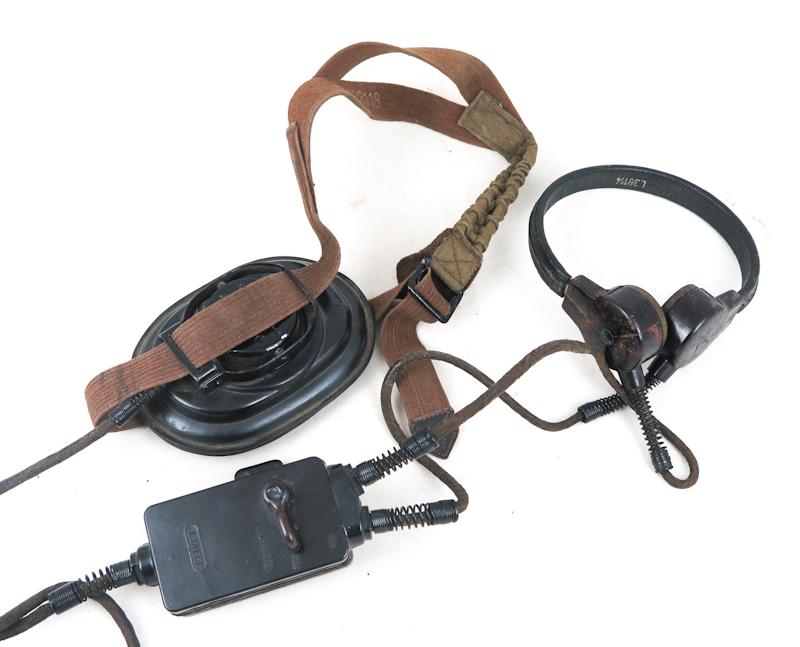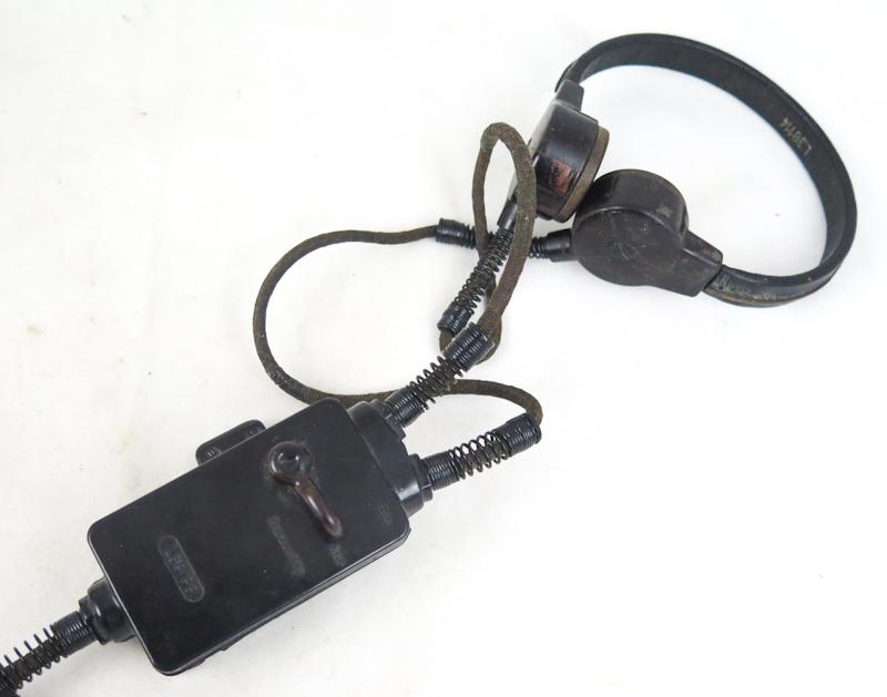 ENG WW2 German FLAK crew headset. Headset used by FLAK crews. Single rubber padded headset L38116 with throat mic L38114 and control box L38133. Good condition. Original cloth covered wiring,unfortunately the pliig has been cut off. Maker "DTW" on headset, dated 1943. Nice and rare set.