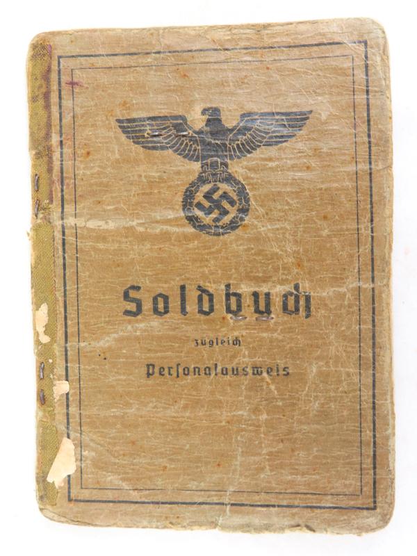 FIN 2MS aikainen Saksan armeijan Soldbuch. Vuodelta 1944, unteroffizier Kleinerth. Jalkaväen yksiköissä ja selustanj oukoissa palvellut. Taistelu yksikkönä on merkitty Feldkommandantur 750 (Vannes) sekä grenadier regiment 515. Kunniamerkeistä ei mainintaa. Aseistus ollut kivääri. Kohtuu siistikuntoinen passi. Hyvä, aito soldbuch.