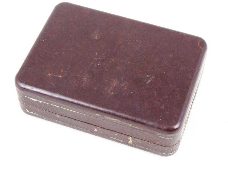 ENG WW2 German S-Mine fuze box, S.Mi.Z. 35. Had 3 fuzes. Box labels dated 1939. Brown bakelite box, dimensions 11 x 7,5 x 3,5 cm. Original labels still in place. Nice, original box!